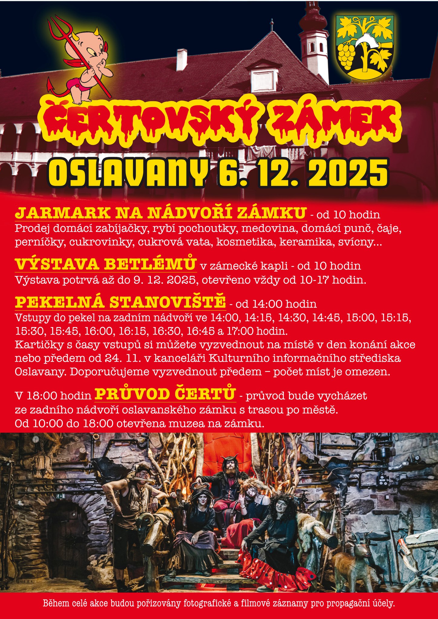 Pozvánka na tradiční ČERTOVSKÝ ZÁMEK, který se uskuteční v sobotu 6. 12. 2025 od 10 do 19 hodin na zámku a ve městě Oslavany.