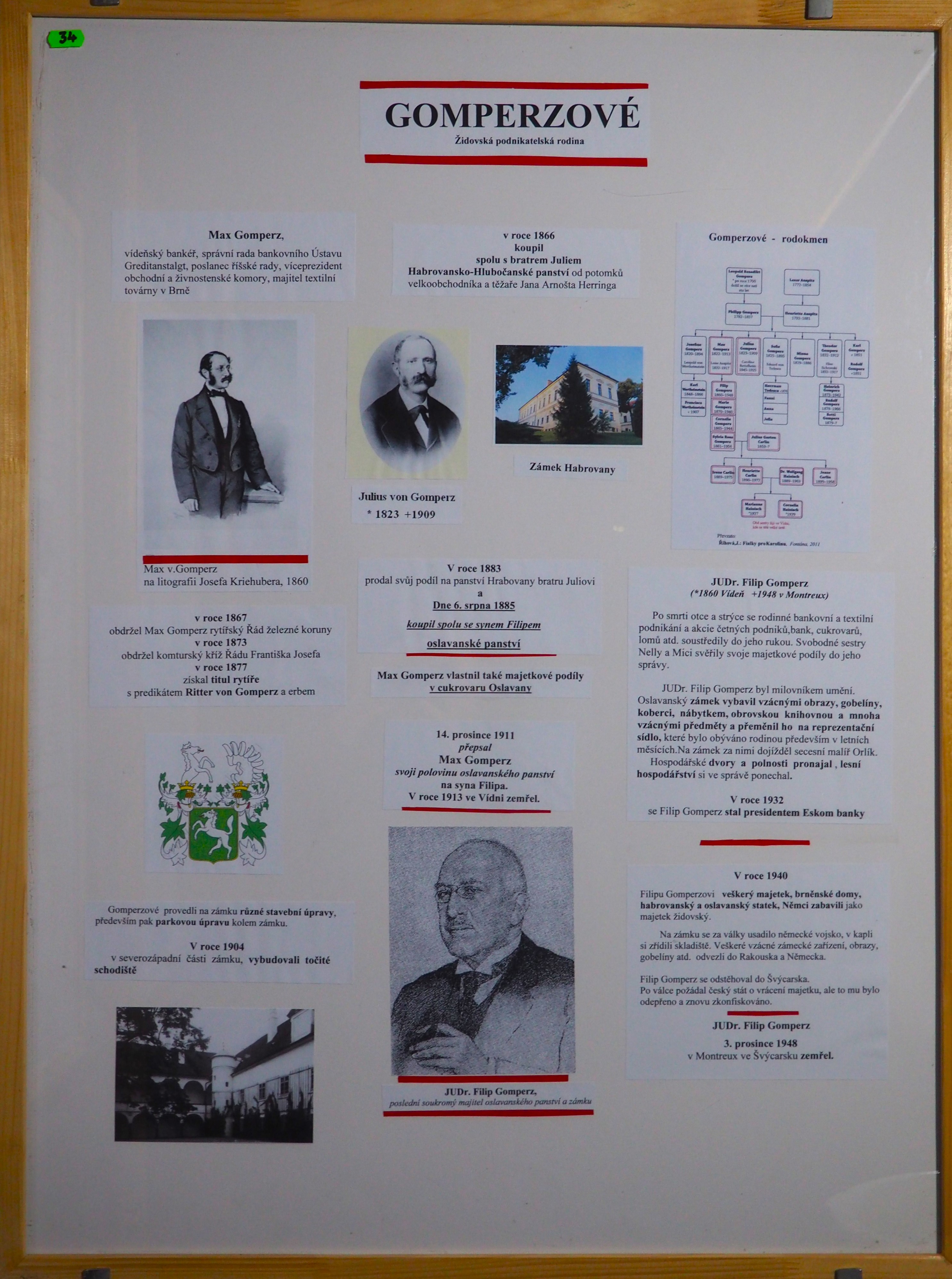 Podnikatelské rodině Gomperzových se věnujeme také v našem muzeu na zámku v Oslavanech v expozici o historii zámku a kláštera, přikládáme vyfocené výstavní panely.